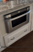This built in microwave opens at the touch of a button. Easy to access and because it is a drawer you can see into it. Great UD.